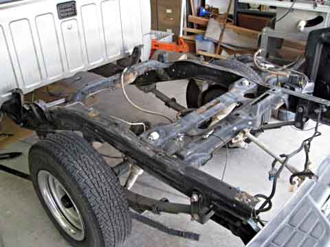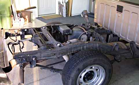 Saving the Gas! 7/17/08 As there was still about 10 gallons of gasoline in the tank (About $40 worth!) I designed a system to transfer it to the Subaru. I bought a 5 gallon gas can (if a plastic container can be called a can). I then cut the harness going to the in-tank fuel pump, and connected it to a simple wiring harness. I removed the fuel lines between the tank and the fuel filter, pulled the filter and lines from the frame, and reconnected the lines to the tank. The filter was now on the end of about 3 feet of flexible fuel lines to the tank. I connected the harness to a 12 volt battery. I had a switch in the harness which I put in a plastic zip-lock bag to isolate any sparks from any gasoline fumes. Using this setup, I pumped a total of about 10 gallons into the gas can in 3 sessions. I put all I could in the Subaru until it was full. I still have almost 5 gallons left in the can for later use, and the truck tank is as empty as the pump can make it. Now I removed the fuel tank and all remaining fuel