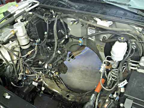 While waiting for the motor to arrive, I went through the various wiring harnesses and removed all that I deemed were not required. This cleaned up the hood area considerably. I then pulled the front seal and the clutch actuation cylinder from the front of the transmission and replaced them. Finally the motor arrived! I now have enough