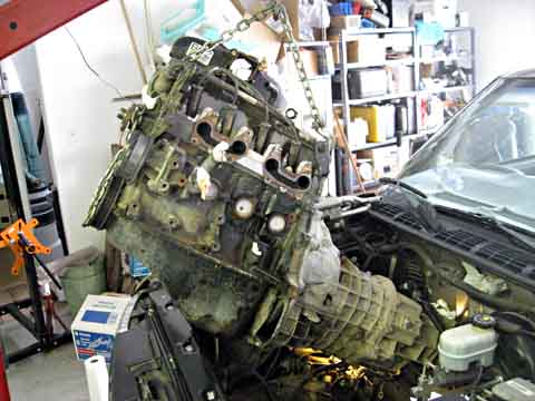 the fuel filler pipe, removed 8 bolts, and using my engine hoist,