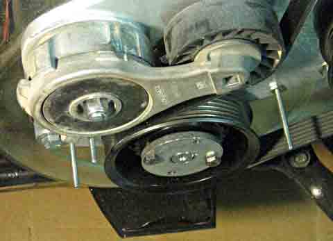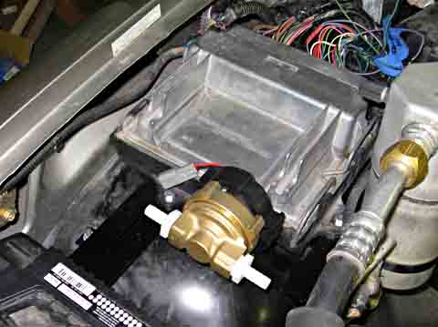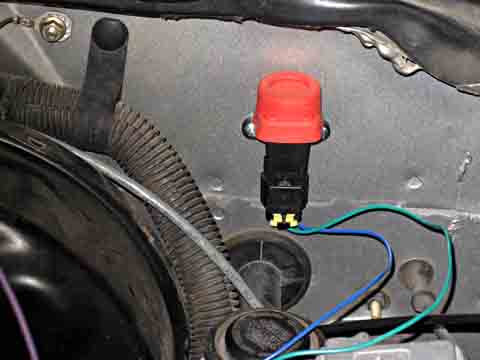 Fastening the sensor housing in place completed the installation. If I need to change the serpentine belt some time in the future, I only need to remove the 3 nuts holding the assembly to the studs. When done, I can slide the assembly back over the studs and tighten it. The alignment will not be affected. Inertia Switch Mounting Installing the inertia switch completed the mounting of