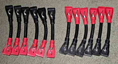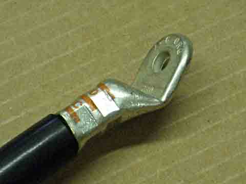 Making the cables for all the high current interconnects is a somewhat tedious process. First I need to score the insulation just slightly farther from the end than the depth of penetration into the lug. This is about 1 inch. Then I have to bend the end of the cable to pull apart the thin section of the insulation that is left. This is preferable to cutting deeper and nicking some of the wire strands. Next I coat the inside of the lug with Noalox. This is an anti-corrosive, metal particle loaded cream. I carefully place the lug over the stripped cable, being very careful not to catch any of the many very fine wire strands. I rotate the lug to align it correctly for the application. I then use the long handle crimper and place two crimps on each terminal. Next I put a length of shrink sleeve over each end, being careful to put the red and black sleeves on the correct ends, if there is a difference. I shrink these lengths of sleeving using a hot air gun. Finally, I stretch the hole of a boot with a pair of long nose pliers, swab it with soapy water, and swab the shrink sleeve with the soapy water. I then work the insulating boot over the end of the cable into place on the shrink sleeving. It is a very tight fit. When I have done these operations to each end of the