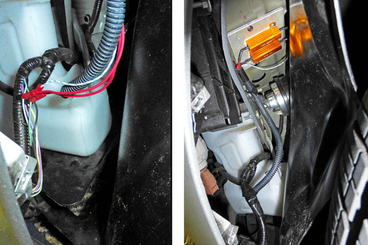 the resistors: The wires for both sides of these lights pass through a