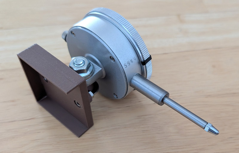The box is a snug fit over the extruder motor and holds the dial indicator