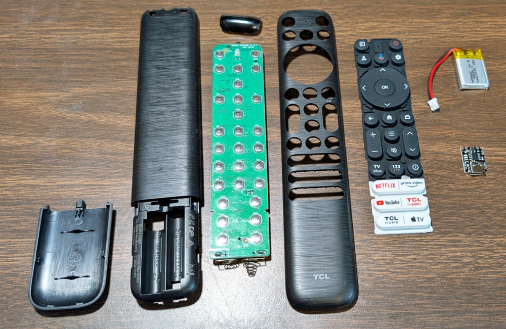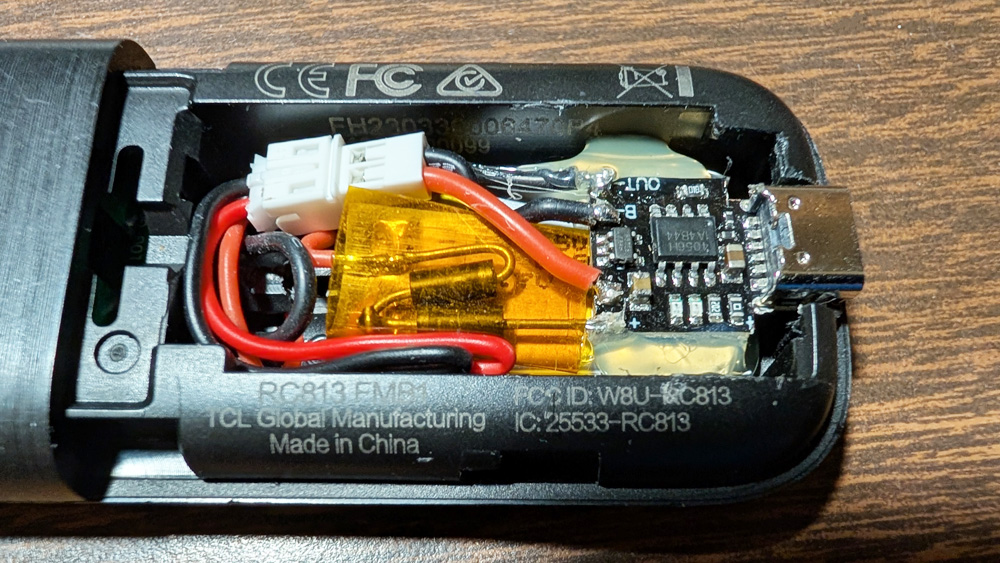 The only way the finished remote looks different from the original is the presence of a USB C connector on the bottom.