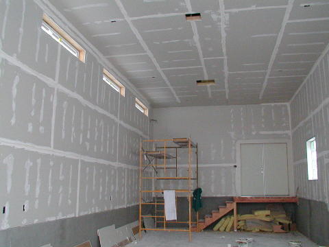 At the house I went around and loosened the earlier outlets and switches so the paint can hit the wall behind. The later ones I installed were already done this way. I cut holes in the drywall and installed "mud-rings" in all the appropriate locations to access my conduits for phone, TV, and computer network wiring. It was much more comfortable today! Monday, March 3