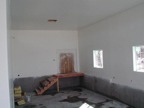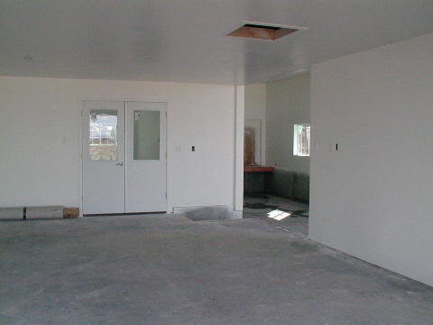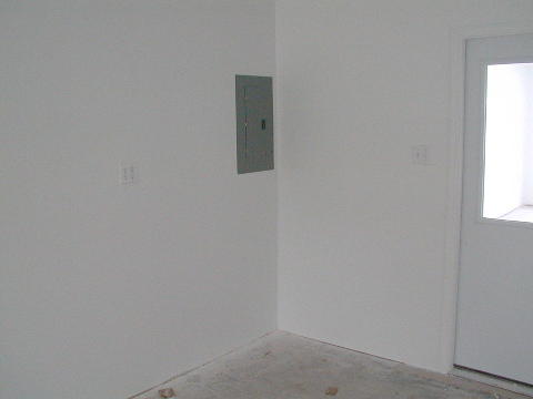 I started by installing the lever lockset in the door between the garage and the shop. Next I installed both a lever lockset and a deadbolt in the outside shop door. I now have a room outside the house which can be locked! As I went around, I pulled the masking from the doors and windows, as well as from my electrical items. Next I installed the cover on the breaker panel. It is an interesting construction. There is a flat plate with formed edges that screws to the box set in the wall. There is a hinged cover on this plate. Behind the cover is a plate with the knock-outs for the breakers. This is a floating plate that rides on a couple of pins, and is spring loaded against the breakers. They must have to do this to accommodate panels that are not installed quite flush with the wall. I then started pulling the masking off my outlets and switches in the garage. As I went, I tightened the mounting and installed the plates. The garage certainly looks a lot more finished with the switch and outlet plates! I continued on into the shop and did all the ceiling outlets and the few switches and outlets I had already installed. I installed a few outlets and switches. I did all the ceiling light outlets in the RV garage. Then I discovered one switchbox where either I negleted to mask, or it came undone during the painting. I have painted wires! At least it is the only one. The concrete crew is scheduled for 1 PM tomorrow to pour the RV driveway. Things are getting really close now! I think I will send this now, and start a new report tomorrow. Till next time, Dick I have posted photos on-line at: http://members.isp01.net/rmason/statusreports.html