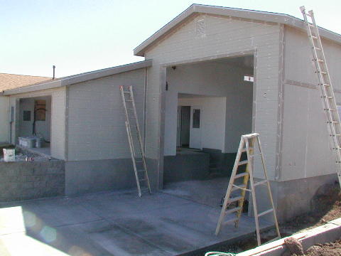 He started putting the 2nd coat on the lower walls of the RV garage.