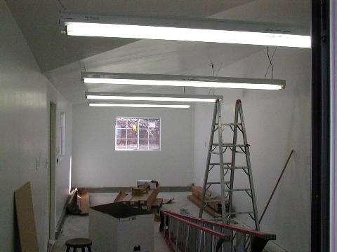 caps installed on the west wall, re-installed carpet, and all 4 fluorescents