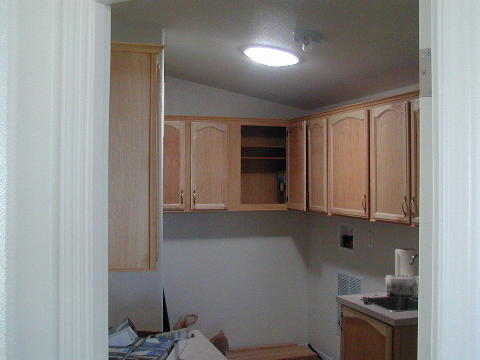 calking all the seams and nail heads. Shortly the carpet layers arrived.