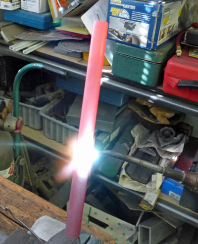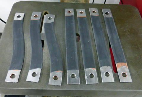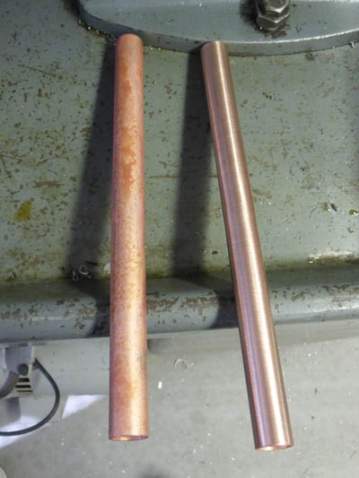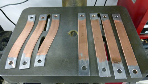 I started making the bus bars by heating a length of copper pipe to a cherry red, then quenching it in