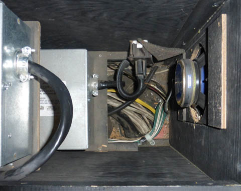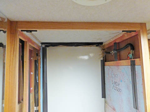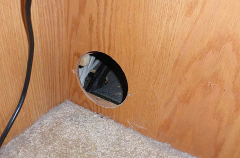 the hole where wires enter the tunnel to the bathroom, including the newly added yellow one.