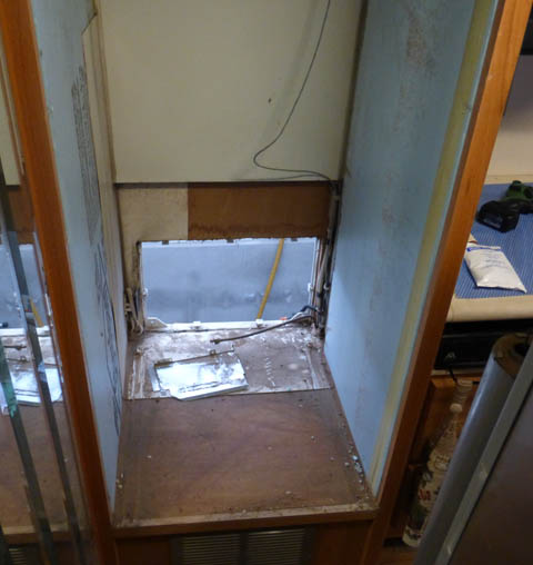 This is the cubicle where the refrigerator used to live. The open hole to the outside