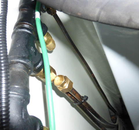 hose out of the way. Through it I can now see and reach the wires as they come back up from