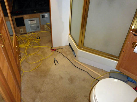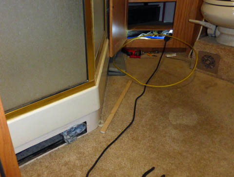 the grill, then I fished it through the back of the shower area into the corner cabinet under its floor,