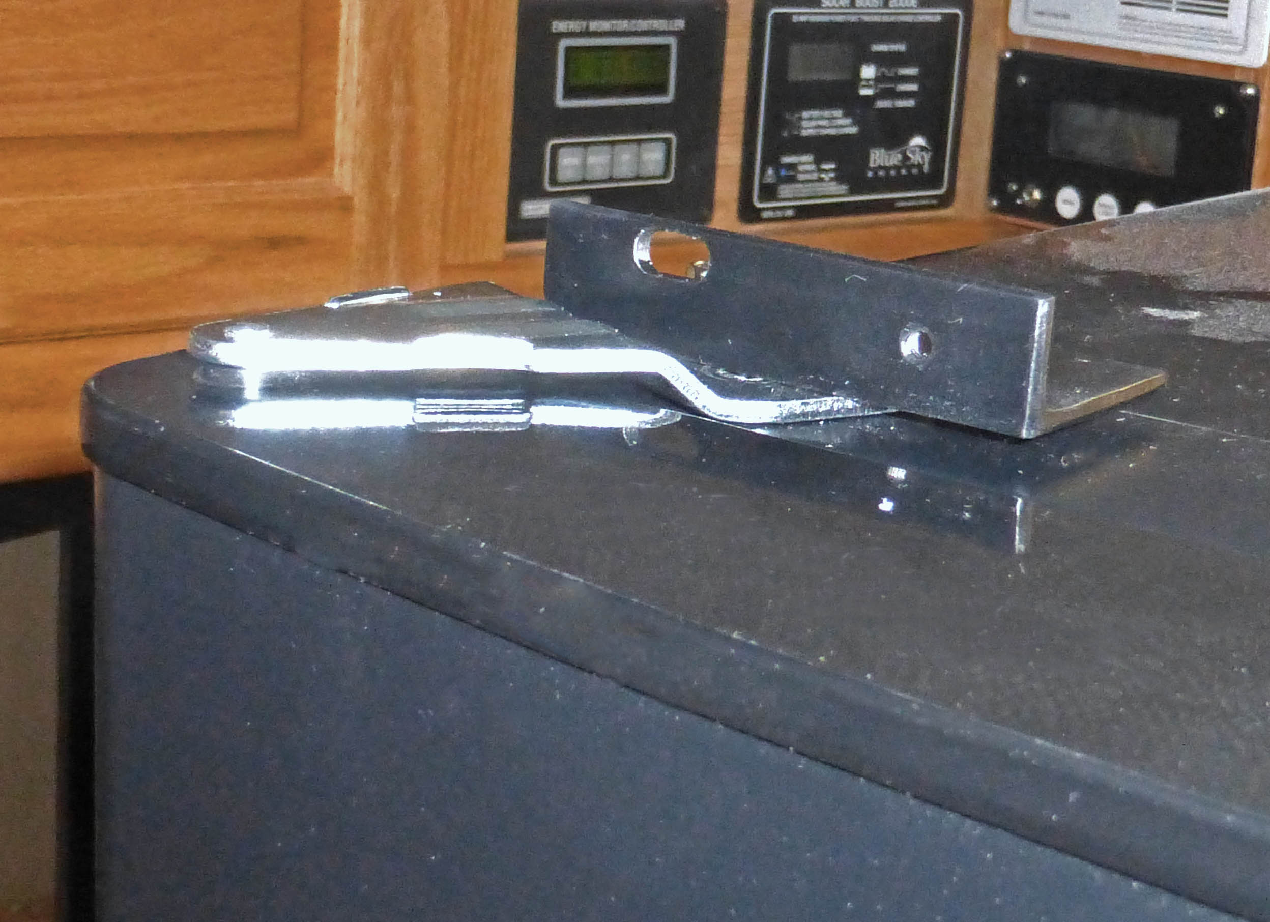 rear edge of the refrigerator frame and lag bolted down to the mounting
