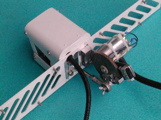 Adjustable Mount: There were a couple of requirements to take into consideration in the design of the camera mount. It obviously had to be able to aim the camera higher or lower. It also had to move the camera to the rear when pointing downward. The rear of the Fortravel has a bend above the engine grill which prevents the factory camera from seeing the ground immediately behind the coach. The externally mounted camera did better, but still could not see the bumper or the ground really close to the motorhome. I designed and built a mount using a 4-bar linkage which moves the camera to the rear as it lowers the angle. In the up position the camera is tucked up under a protective cover. I mounted a gear-head motor and an additional gear reduction on the inside of the air intake grill. A linkage from the gear pushes and pulls the camera mount through the plate. A pair of limit switches stop the motor at the upper and lower ends of travel. The linkages are all bushed with nylon to prevent wear and to provide a certain amount of friction for stability. The appearance of the completed camera