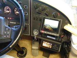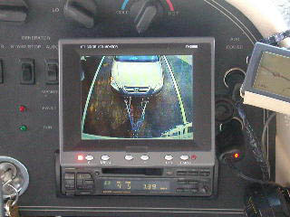 The addition of the motor driven mount did require two additonal wires to be able to control it from the driver's area. There are several unused wires in the overhead area of our rig above the bed. I used two of these. I found the other end of them in a wire loom on the left side of the engine compartment. Also in the engine compartment are a number of wires labeled as spares. These run to under the dashboard. This made completing the wire runs fairly easy. A switch under the dashboard controls the camera position. This was obviously not the typical do-it-yourself project, however if you were to omit the adjustable camera mount, there is nothing here that a "handy" owner with a slight knowledge of electronics could not do himself. The total cost of this new system (NOT including my labor) was under $300! Its performance has exceeded all my expectations. It is bright, sharp, and clearly shows everything I want to see for the type of driving I am doing. Addendum of February 2007 Over the last several years the display of the monitor has varied with the external lighting. Sometimes it is bright and clear, and other times it is hard to get a good image. It was not too bad, but was annoying. After reading several messages about people on the Foretravel Yahoo maillist replacing their monitors with a "Super 7" TV/monitor I went on Ebay and bought one. I replaced the color monitor with this one and now see a much more consistent bright image. I am now using the original monitor with my