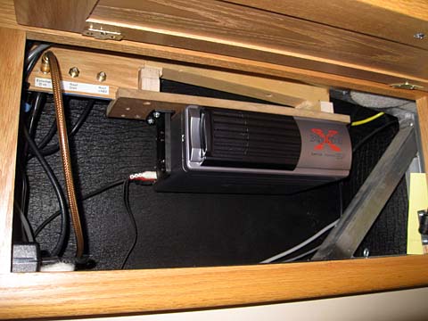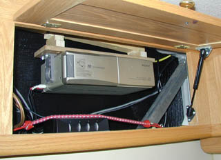 Radio and CD changer: My Foretravel did not come equiped with the optional CD changer, however we had purchased a Sony radio and a 10 disk changer for our Gulf Stream at a nearby Sony outlet store. Before we made the Gulf Stream available for trade-in I removed this equipment. Changing the radios consisted of crimping about 10 wires with a different type of connector and plugging them in. I mounted the radio in the panel and it all worked fine. I mounted the changer in the upper right