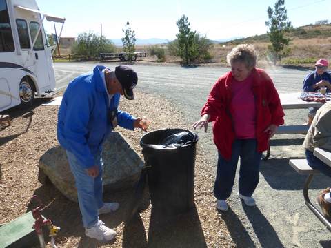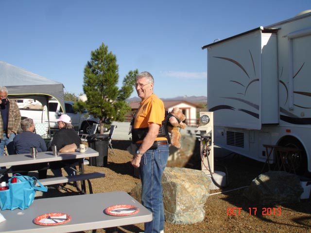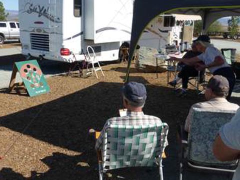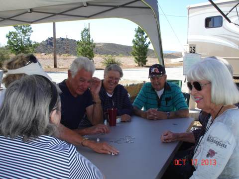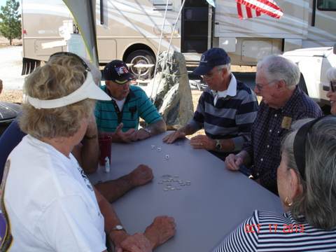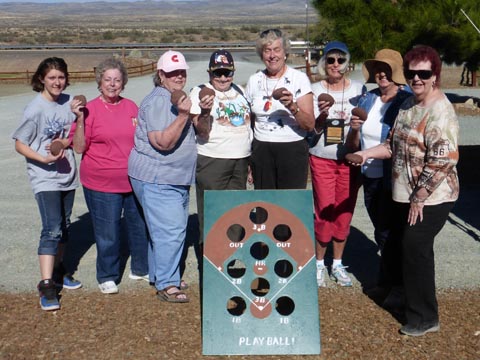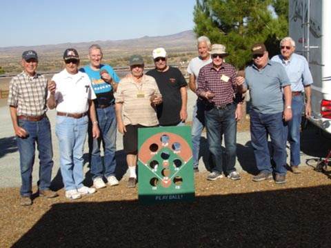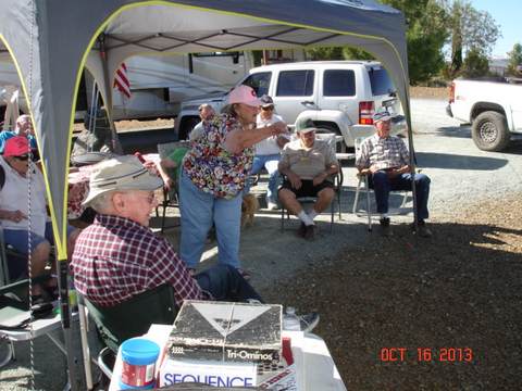 SCRR Rally at the Quail Ridge RV Park, Mayer, AZOctober 15 - 18, 2013![]() The bean bag baseball game starts. ![]() The crowd was roaring with every play! ![]() Linda scores for the ladies. ![]() The men won the first day 2 games to 1. ![]() Marilyn is about to score! ![]() The women were the champions the second day 2 games to 0. ![]() Quail Ridge RV Park office. ![]() View of campground area. ![]() The hosts are preparing breakfast. ![]() Dick had been told he was missing his papoose (from his back brace). The next morning, he corrected that problem. ![]() The members are waiting for breakfast. ![]() Dumpster divers Al and Joyce survey their treasure. ![]() Afternoon game of LCR. ![]() Joe - did I roll that? ![]() Hosts Hank, Marie, Jo Ann, and Joe. Thanks to Marilyn for most of the pictures and Dick for a few.