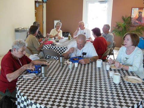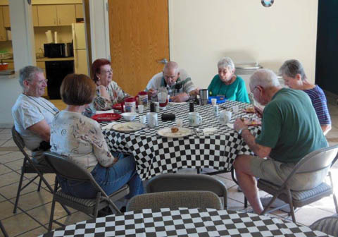 We are eating our Wednesday morning breakfast in preparation for the day's activities.