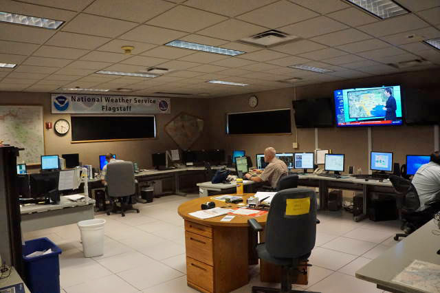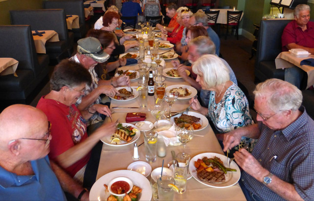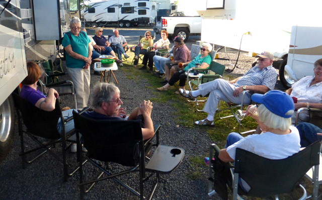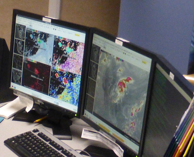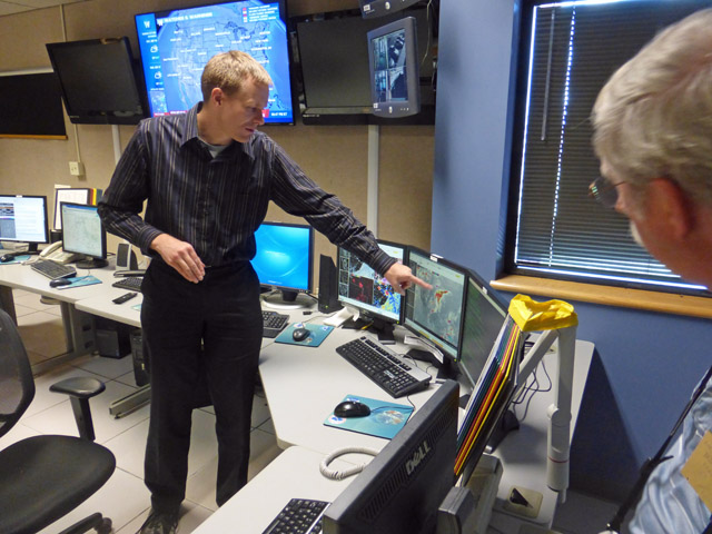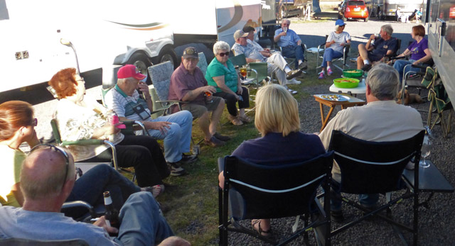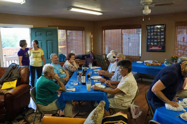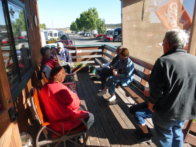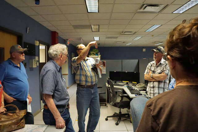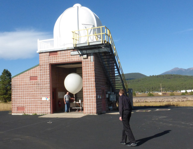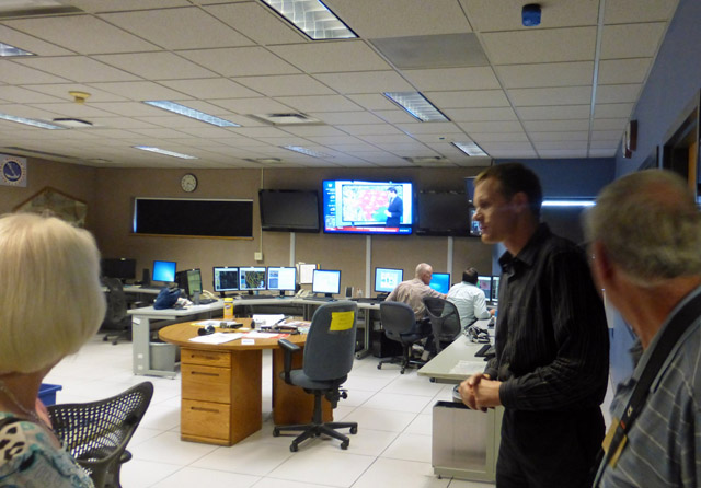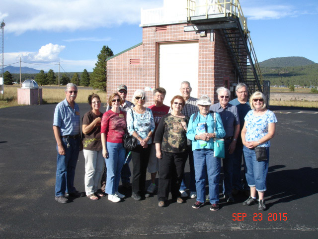 SCRR at Williams, AZ 9/21 - 9/25![]() This is the main office and owner's residence at the Railside RV Ranch. The clubroom is off to the right, mostly cut off in this picture. ![]() Our 8 rigs were parked in a line just behind the office. ![]() ![]() The campground supplied a continental breakfast each day consisting of waffles, cereal, juice, eggs, and fruit. It was very good! ![]() Happy hour was a time to sit around and catch up with what has been happening to the others since we last saw them. ![]() It was also a good time to get to know the newer members and guests. ![]() Wednesday we went to the US Weather Bureau facility in Bellmont for a tour. ![]() All of us who went to the Weather Bureau pose for a picture. From left to right are Norm, Kate, Mary, Mike, Marilyn, Carol, Rosemarie, Dick, Shirley, Bill, Bob, and Cathy. Missing is Marv. ![]() ![]() Our host is pointing out some details on the satellite map. On the right are screens showing variations of the radar maps on the left, and the satellite map on the right. The various views of the radar display are actually different types of radar. By using them together, the forecasters can tell much more than with just one view. ![]() Typically, there are 2 forecasters on duty at any given time. This varies according to an urgency scale they have established. During times of very active weather, the staff is larger than during times of stability. The forecasters have many duties they can move between. ![]() ![]() We were very fortunate to have such good explanations of the reporting and forecasting efforts. ![]() Here the forecaster responsible for launching the weather balloons shows us a radiosonde and explains what it does and why. ![]() After touring the office, we were taken out to the balloon launch facility. It is a separate area across the street from the office. There is a small building with a radome on the roof. The radome houses the antennas which track the weather balloon and receive all the data it sends out. ![]() ![]() The forecaster inflates the balloon with hydrogen inside the building. If the winds are strong, he can partially close the garage type door. Once the balloon develops the correct amount of lift, the filling valve shuts off automatically. He then attaches the long line between the balloon and the radiosonde. The orange item on the line is a parachute. This is used to slow the descent to prevent injury or damage to people or property on the ground as the rig descends at the end of the flight. ![]() This is the radiosonde. It is a small package of instruments and radios. It senses temperature, pressure, humidity, etc. and includes a GPS to continuously send back its exact location. ![]() Here, our balloon is in the process of being released. He slowly releases line until the radiosonde at the other end of the line is lifted, he then releases it. It will usually obtain a height of 12 to 15 miles, collecting data all the way, until the balloon bursts. The balloon starts out at about 5 feet in diameter, but as it rises and the pressure around it decreases, it grows to about 20 feet in diameter, and eventually bursts. At this point the radiosonde stops transmitting and the parachute keeps if from falling too fast.. ![]() Here we see the balloon in full flight with the radiosonde hanging far, far below. They use such a long line to prevent the effects of the sun heating up the balloon from affecting the readings. ![]() Wednesday night, the park shuttle took us to the Red Raven restaurant for dinner. It was sure nice to not have to worry about car-pooling, driving, and parking. ![]() We all had excellent dinners! I understand that this restaurant is the only one in town with an honest to goodness chef! ![]() ![]() The clubhouse was well utilized for both our first night's heavy hors d'oeuvres and our final night host prepared dinner. These pictures were taken by Marilyn, Norm, and Dick |
