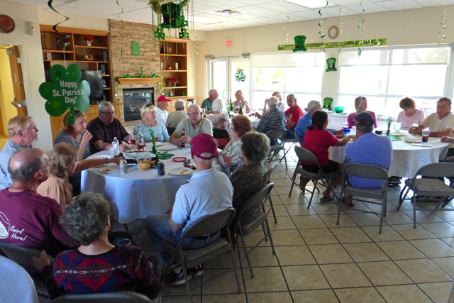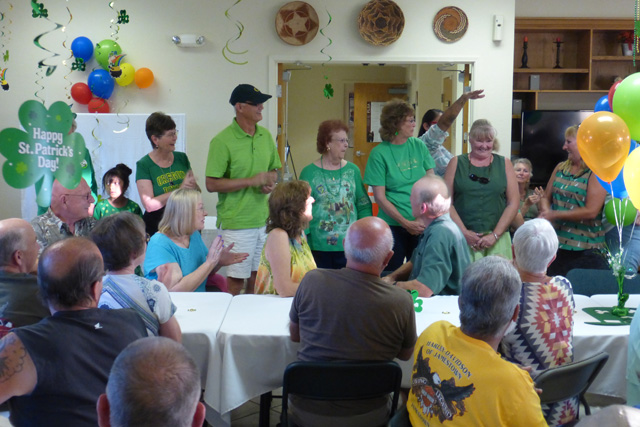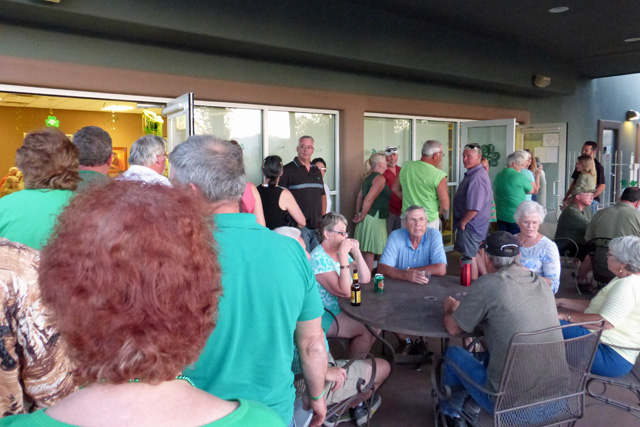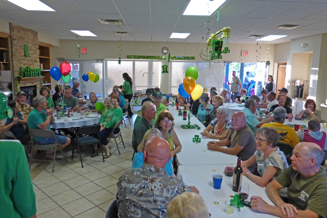 A little later, the room was mobbed by hungry campers. waiting for their free corned beef and cabbage dinner.