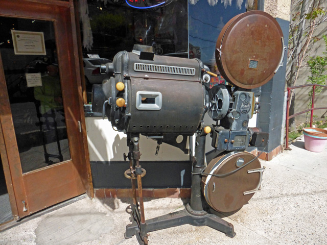 we encountered this vintage movie theater projector which used an open carbon arc for the light source.