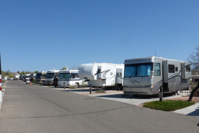 Our rigs are parked in a line in this row and in the row just behind.