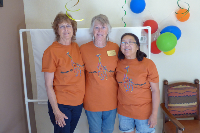 Here we see Jeanne, De, and Jane posing in their new Out of Africa shirts.