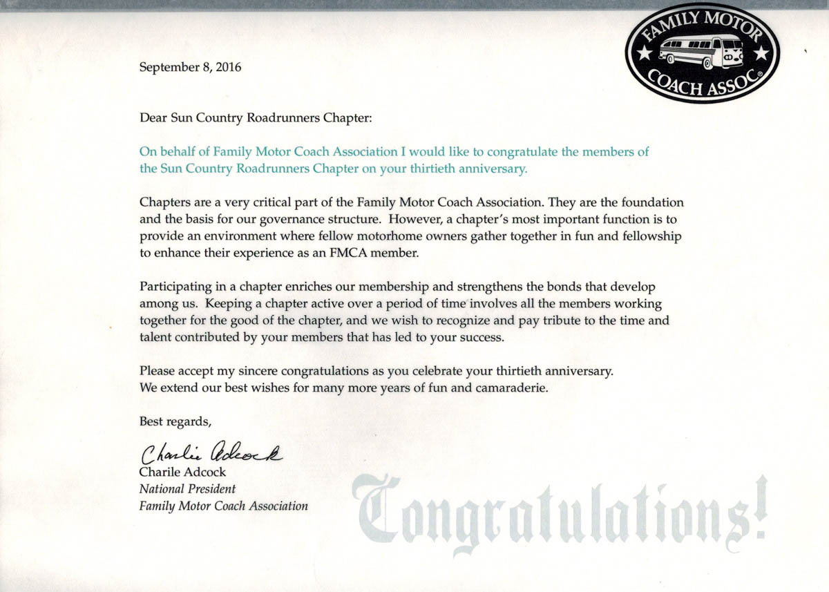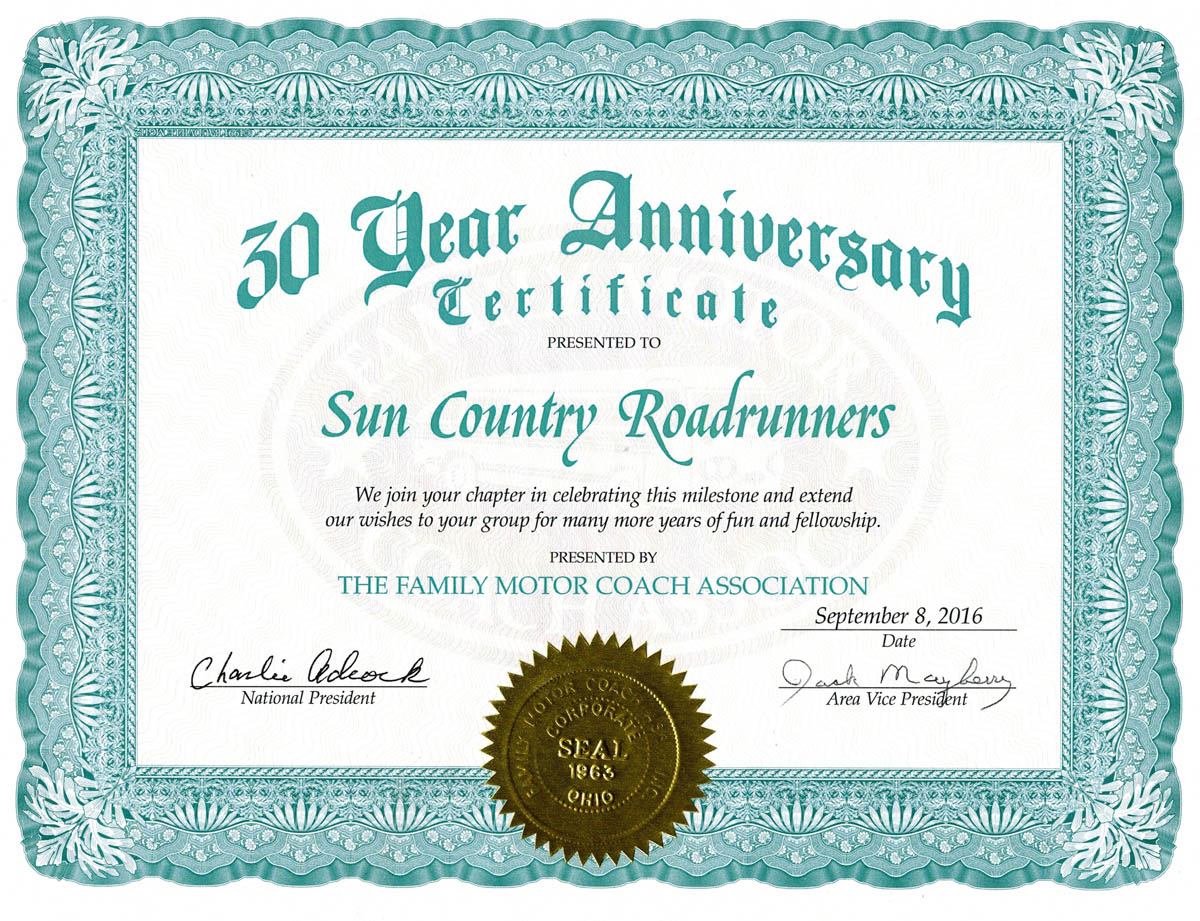 recognizing our 30th anniversary, presented by the FMCA at the Farmington Rocky Mountain Ramble.