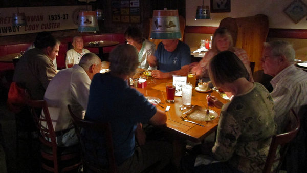 Thursday's dinner out was at the Rancho 7 restaurant. Here we see clockwise, Debbie (facing away),