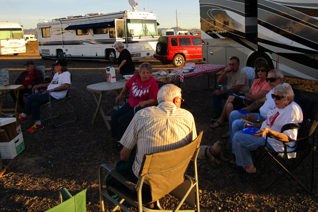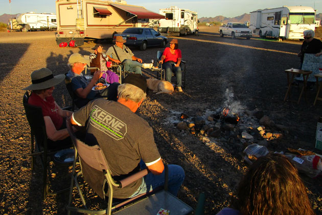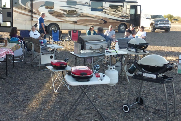 One evening we had a barbecue and pot luck. We had 5 grills, so there was no problem cooking our meat.