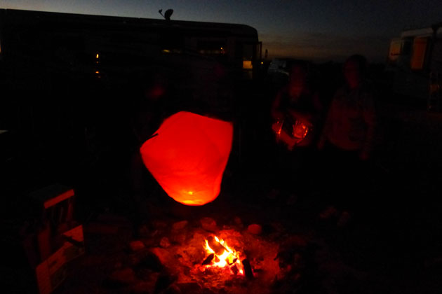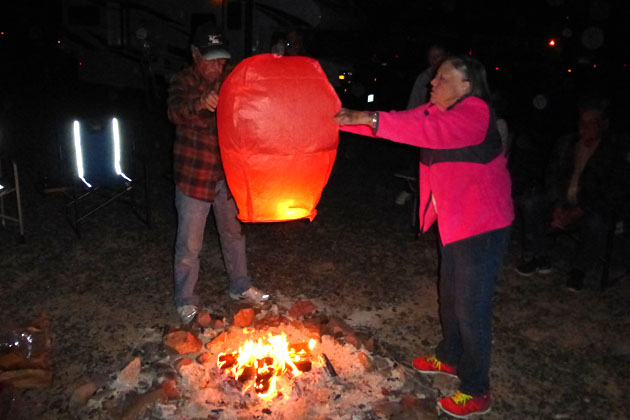Here are Norm and Mary pre-heating and then waiting for the wax flame to heat the balloon.