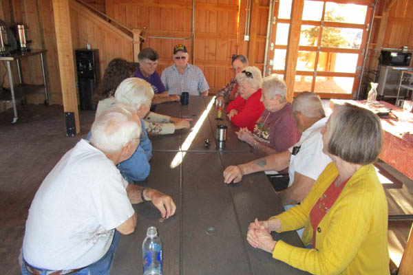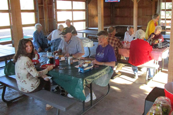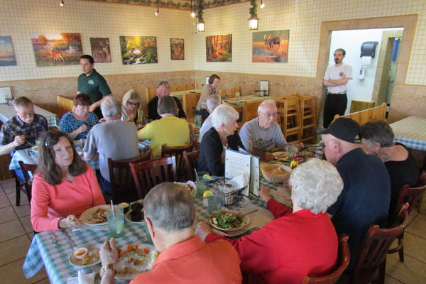 Facing us at the far table are Michael, Linda, Marcia, and Doug. At the near table are Shirley, Dick's empty chair,