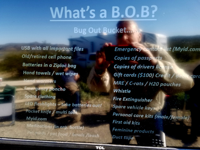One of the tips they feel the strongest about is the B.O.B., the Bug Out Bucket. This is important for everyone, but