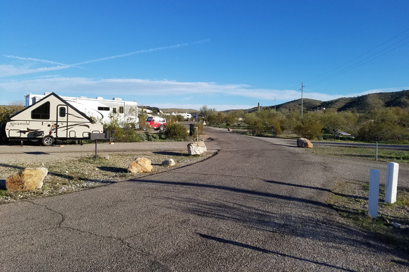 In this loop, the left side of the road was water and electric sites. The right side was dry camping. It's pretty