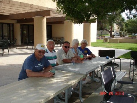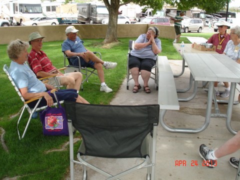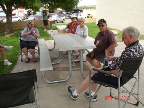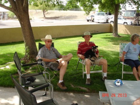 Linda, Ralph, Dottie, Hank, and Bill relaxing in the shade