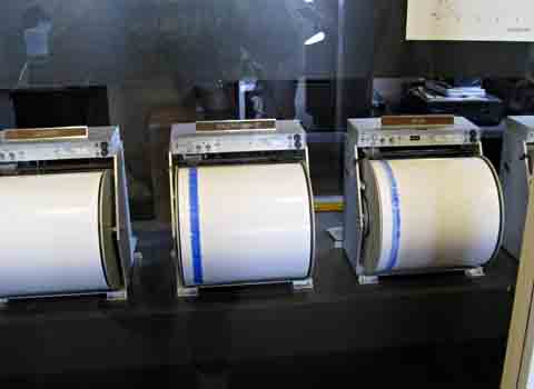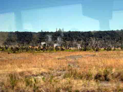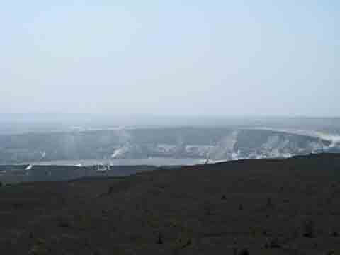 From here we ascended the mountain to the Volocanoes National Park. The driver had to check with park officials to see if we could go, as things are happening! The area is emitting about 6 times the normal levels of gas, and sometimes it is too much for the tours to go up. We were allowed to go. We went to the top of the volcano past many steam vents in the ground. We looked down into the caldera where steam and gas was venting We went into the instrumentation building where a number of seismographs were recording the activity of a number of locations around the volcano. They feel that Kilauea is going to errupt in the near future. It already is putting out molten lava through rifts in the side of the dome, which we saw last night. The atmosphere was very "smoggy" from the volcano gasses, and breathing was a problem. There was a lot of coughing and hard breathing. Although it was very interesting, it was a relief to leave the mountain. Note of 2/21/08: