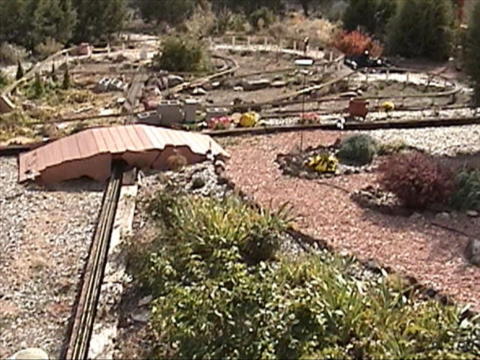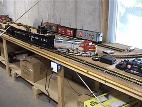 shop. In there is his "train yard" consisting of a 40 foot workbench