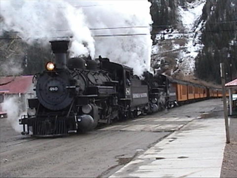 Silverton is an interesting town. The old part is filled with quaint shops selling everything from fudge to tee shirts to funnel cakes, and lots of gift items. We were lucky and arrived shortly before the Durango-Silverton train. We went 12th street and waited for it. The tracks run down the center of 12th street stopping at the edge of Blair street. The train stops within 10 feet of the end of the track. Today's train was a double header. There were two steam locomotives pulling about 14 cars. It was very exciting to see this form of history pulling into the "station". I took a lot of video and a number of digital pics. We then toured the town along with a couple hundred train passengers. We did a driving tour, selected an area, then walked that area. We toured several shops, ending up at a small eatery. Their specialty was funnel cakes. Never having had one, I didn't even know what it was. We ordered one between us and split a drink. The funnel cake gets its name from the fact that the batter is poured from a pitcher with a funnel type spout. The finished product is a flat disk which is created from the interweaved strands of batter. There are openings everywhere, and you just pull off a formation to eat it. It was delicious! The one "downer" was that as I was backing Betty into the second shop we visited, the chair bumped over the rough threshold and the foot plate shattered! The newer chairs use a plastic foot plate, and I first thought I must have crashed it into the concrete sidewalk, but I couldn't have because I had her tipped back at the time. I finally decided that it was the weight of Betty's legs on the plate, amplified by the shock of the threshold that overloaded the plastic. Betty likes to use only one foot plate, so she can still put her feet on the ground. As a result we never use the right foot plate, and very foolishly, I did not even bring it with us! I will examine our options tonight. On our way back, we pulled of at Purgatory, between Silverton and Durnago. This is where for several years, Gene and Betty Wilkison, our good friends of Prescott, came with their son Bruce and his family. Bruce and Lenore, both musicians with the Phoenix Symphony at that time, had a musical vacation hosted by the resort there. We had heard so much about this place, it was interesting to see it for ourselves. After a couple hours in Silverton we headed back to Farmington - we decided not to continue on to Ouray. As we passed through Durango, we took a driving tour of several areas of that city. Back at the motorhome, we watched - and watched - and watched Boston finally beat New York in the 14th inning! Tuesday, Oct 19