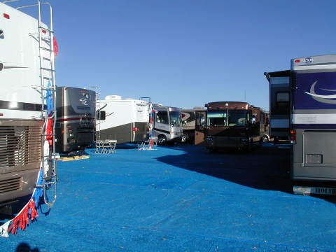 At 2:00, I attended the Chapter Fair. This is where many of the local chapters of this FMCA area set up tables, hand out data, and discuss their chapter activities. Many of the chapters have a camp out once a month, usually skipping the summer months. This area consists of 6 states (AZ, UT, CO, WY, NM, & NV), so the groups are widely disbursed. None of the chapters I talked to were based around Prescott, although many included us geographically. The couple that seemed like the best fit were centered in the Phoenix area, are very large and had a typical attendance of 40 to 80 rigs! That's just too many for us! Tonight was the official opening of the rally. There was the normal recognizing of all the national and area officials. The entertainment following was an exhibition of native dancing performed by local Navajo youth. It was very interesting, especially the authentic costumes with their very bright colors, and extensive plumage. Thursday, Oct 21