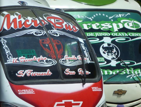 I was amazed to see all the writing on the city bus windshields. How does the driver see to drive?