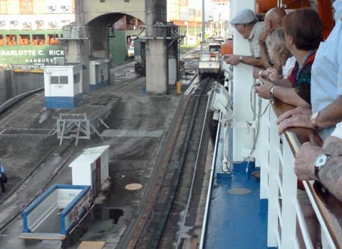 The railings were packed as we entered the first lock.