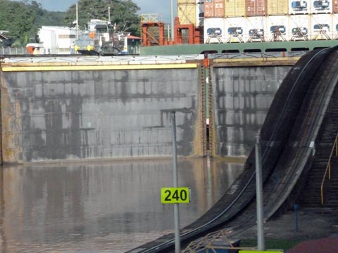 Pedro Miguel lock. We are about to sail out at 85 feet above sea