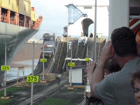 As the ships rise in the locks, the mules