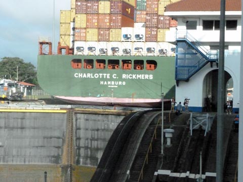Here the container ship is entering the lock.