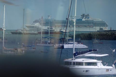 As we approached the harbor, we could see the Coral Princess at anchor.